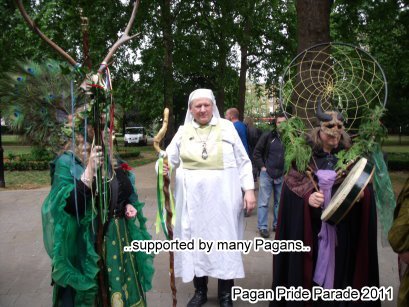 "I think the turn out, despite last minute confirmations, was 150-plus judging by the look. There were so many journalists and press photographers and bloggers... so the news is spreading even as we speak! It was a fantastic bonus to have Jeanette Ellis [former organiser of Pagan Pride] turn up and lead the parade with Geraldine of Atlantis Bookshop [who organised this year's event].